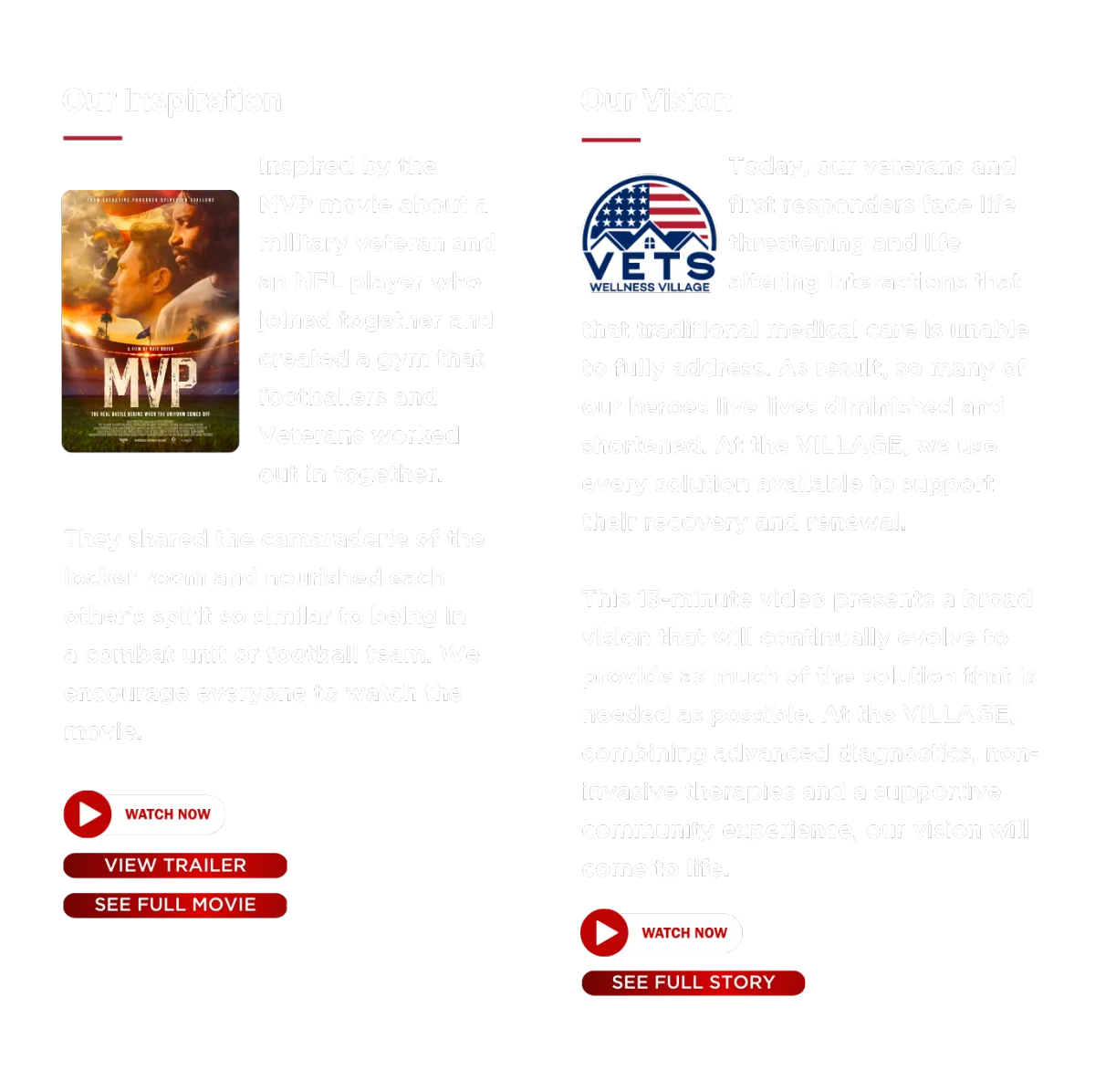 The VETS Wellness Village will include a Butkus Lodge, where Vets First Responders, and injured Athletes, who live together and renew their wellness while building supportive relationships that will last their lifetime.